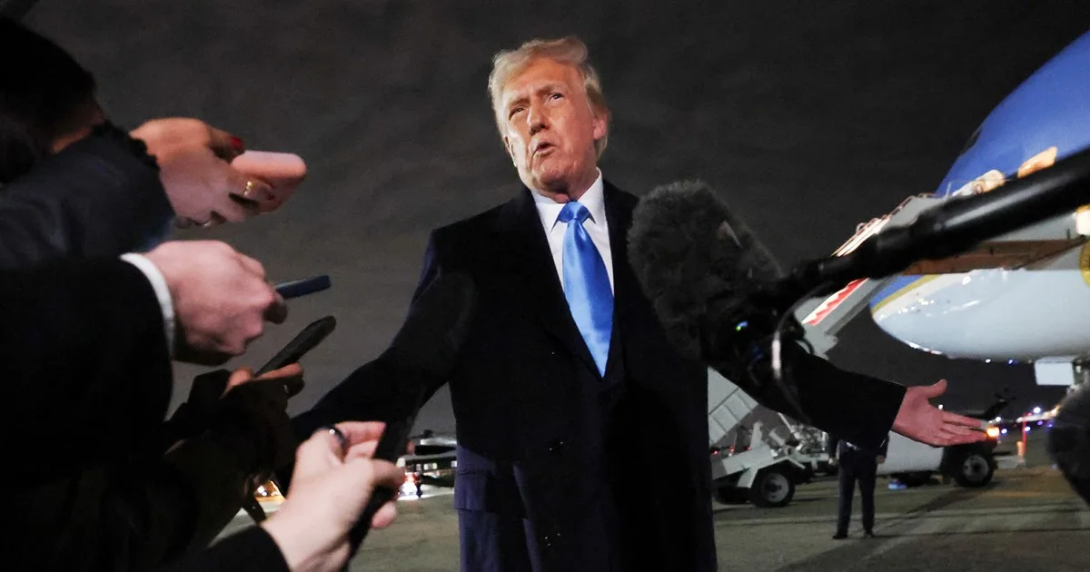 President Donald Trump speak to reporters at Joint Base Andrews in Maryland on Sunday night.Kevin Lamarque / Reuters