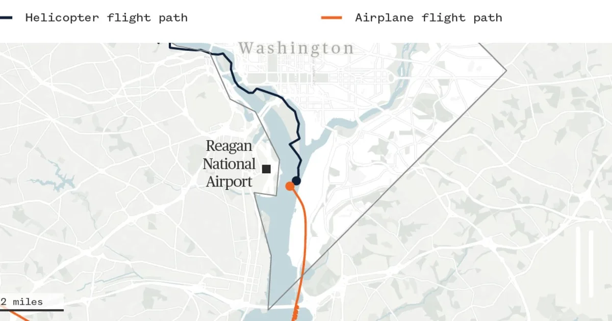 The crash took place at around 8:48 p.m. near Reagan Washington National Airport, just south of the city, when a small passenger plane making its final approach to the airport collided with an Army helicopter.
